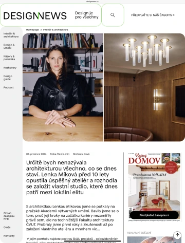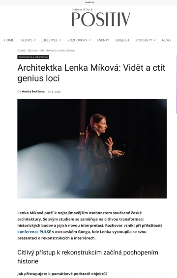 „Architekturu vnímám jako mnohovrstevnaté umění, které dokáže zlepšit kvalitu života a zprostředkovat setkání s krásou, prožité fyzicky i psychicky.“