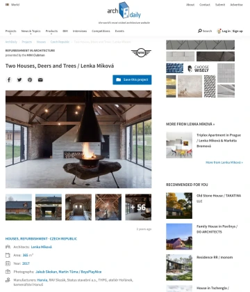 Interiér roku 2017 – kategorie Soukromý interiér-Rekonstrukce – projekt Dva domy, srnky a stromy