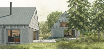 Novostavba soukromé rekreační chalupy se stodolou ve stopě původní usedlosti