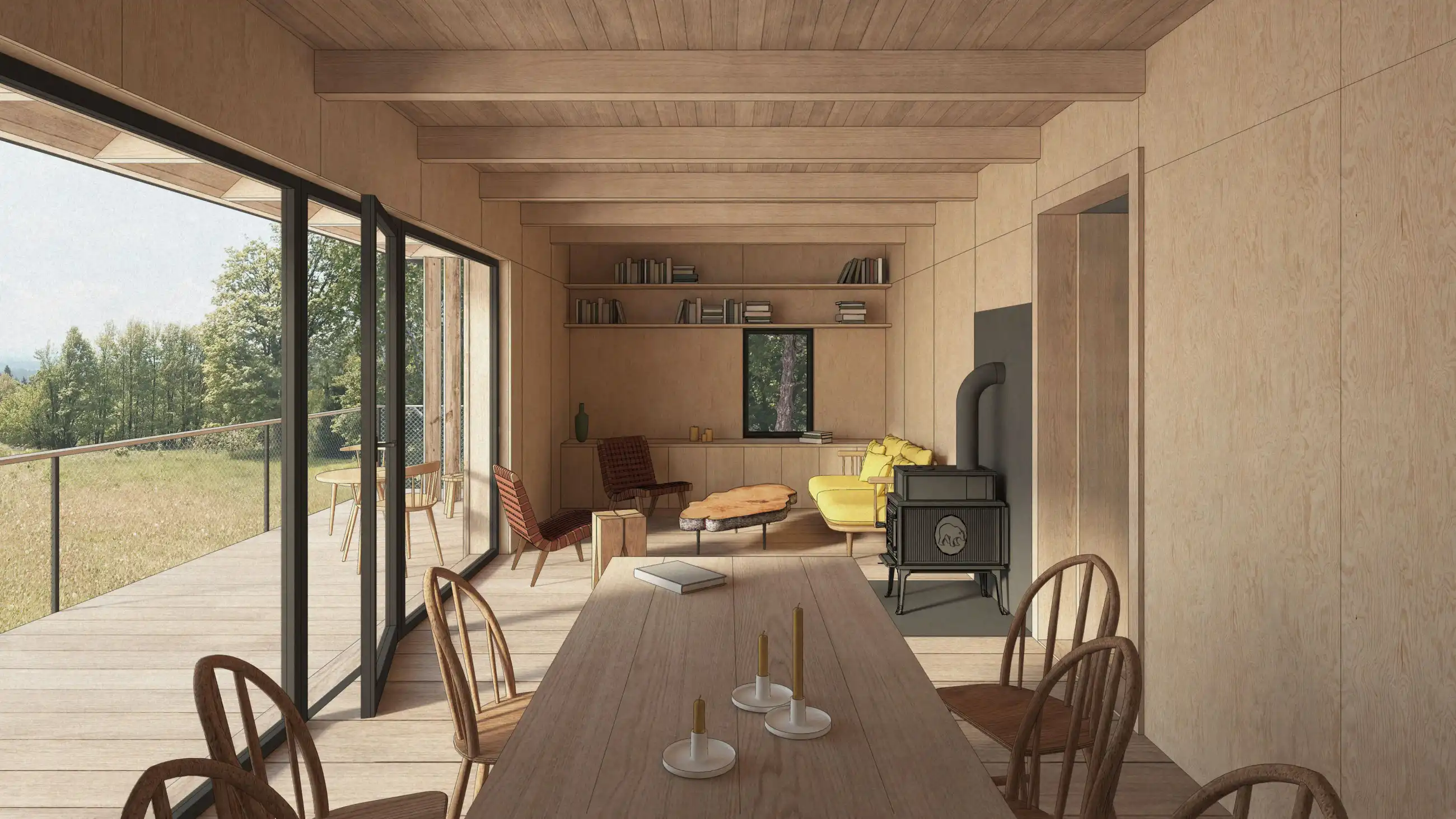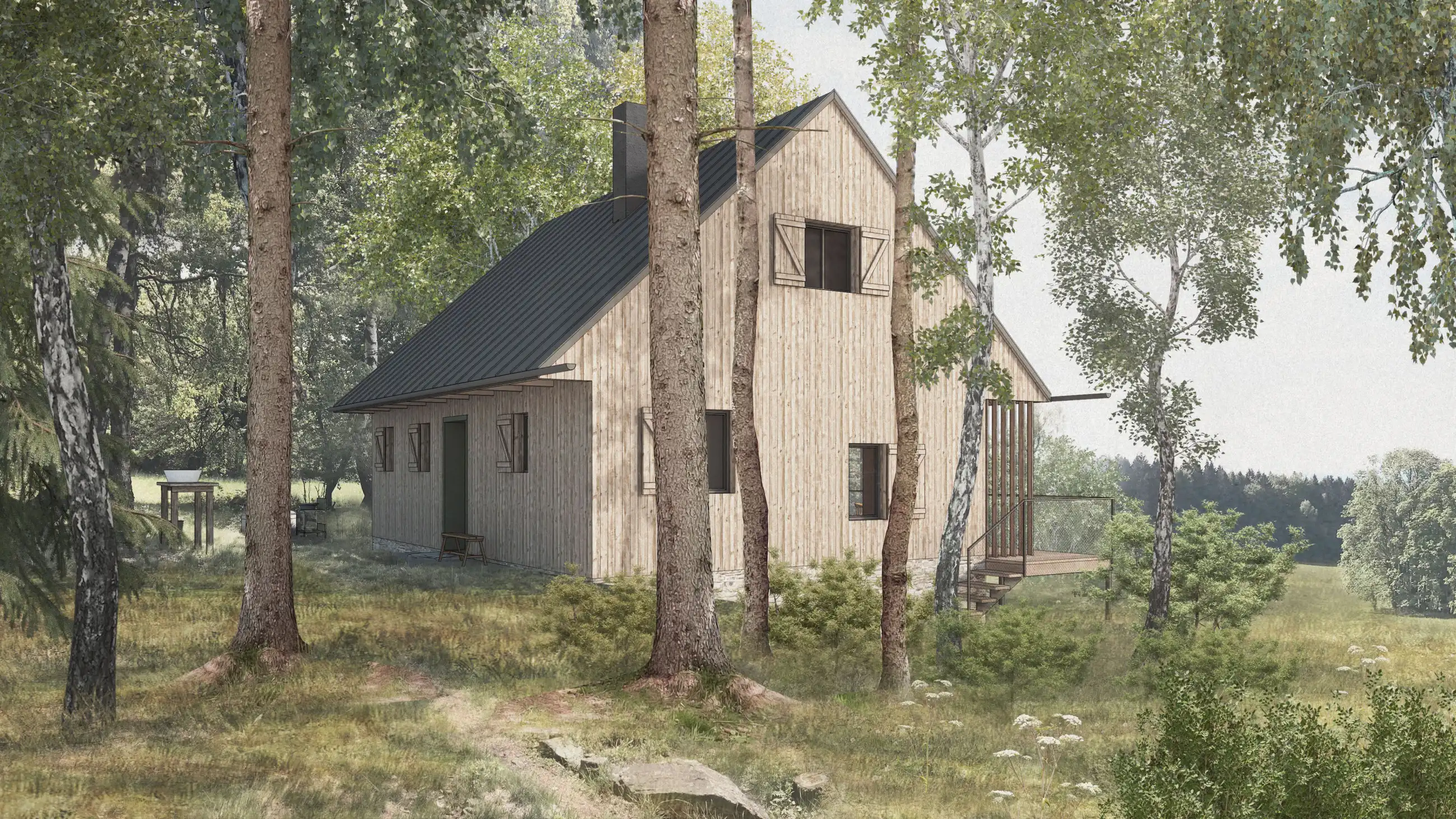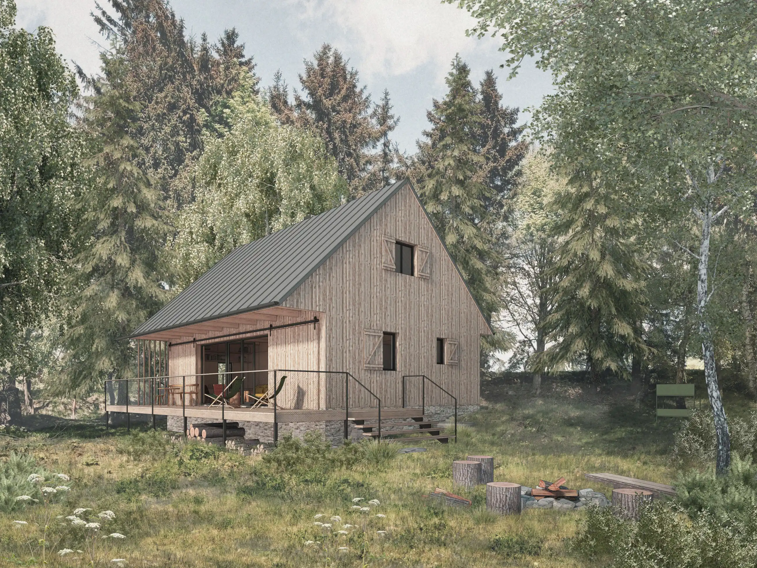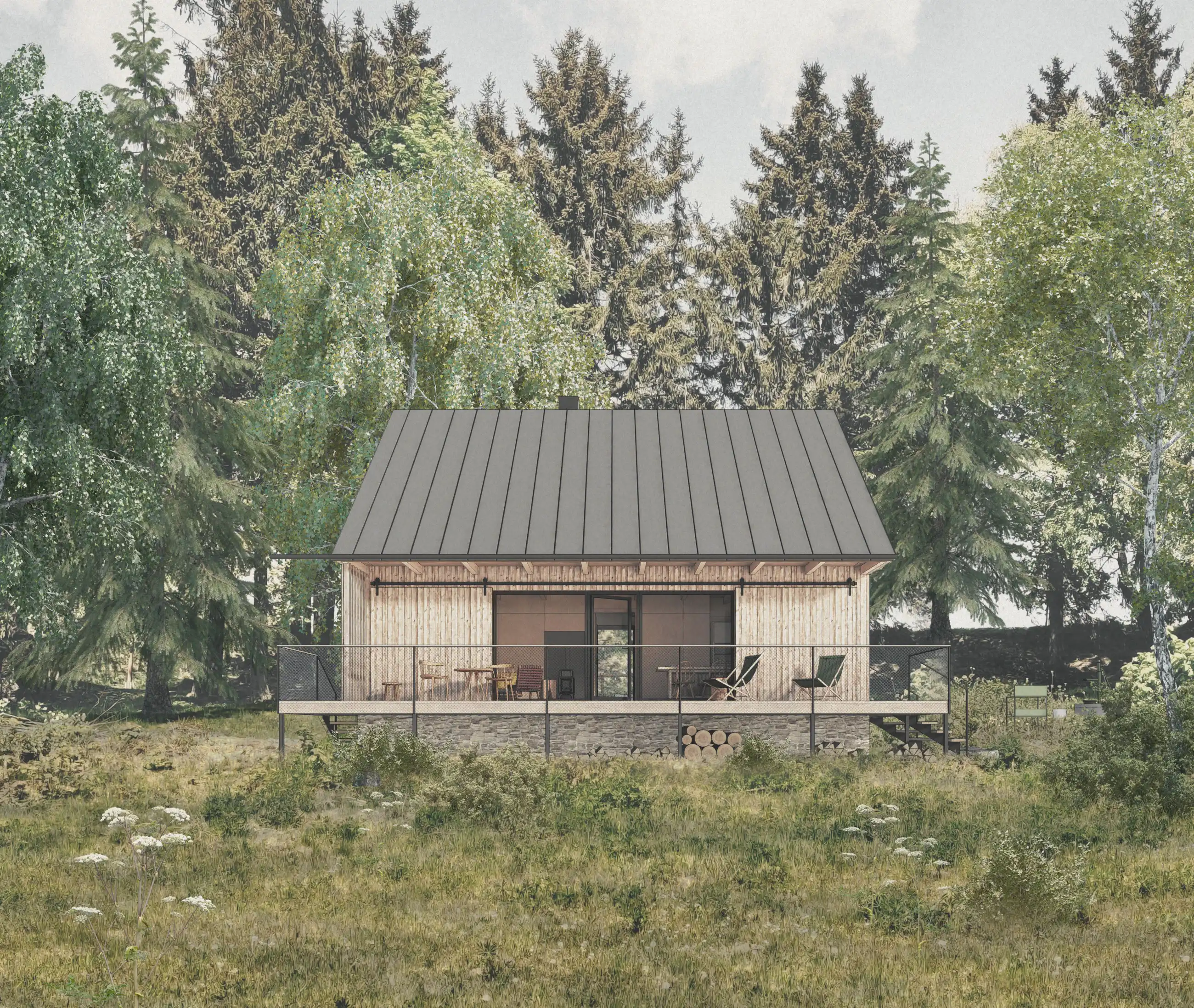 Letní chata na jedinečném místě téměř na samotě v kopcích není jen útočiště pro zpomalení, ale také nositel rodinné kroniky a silných vzpomínek. Na začátku spolupráce jsme využili milé nabídky a přijeli si ji zažít na vlastní kůži, abychom pak mohli citlivě navrhnout její kompletní redesign. Ten respektuje kontext místa i citovou hodnotu původní stavby, která slouží trochu jako rodinná kronika. Dům vytváří úkryt a zároveň expanduje ven. Příroda tu není jen hezkou kulisou, ale přímou součástí života, který se přizpůsobuje jejímu plynutí a vytváří si vlastní, přirozené tempo. Omezené zdroje (voda pumpovaná ze studny, žádná elektřina) to ještě podporují. Návrh v zásadě drží původní tvar a reflektuje praktické návaznosti, proudění větru, světla, dosah paprsků i deště, výhledy, současné zvyklosti a malebnosti. Těšíme se zpátky!