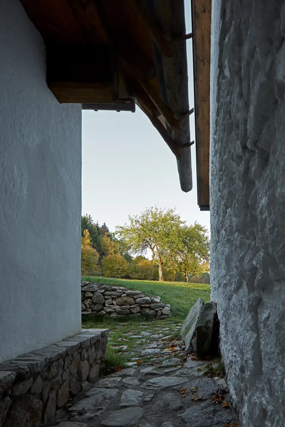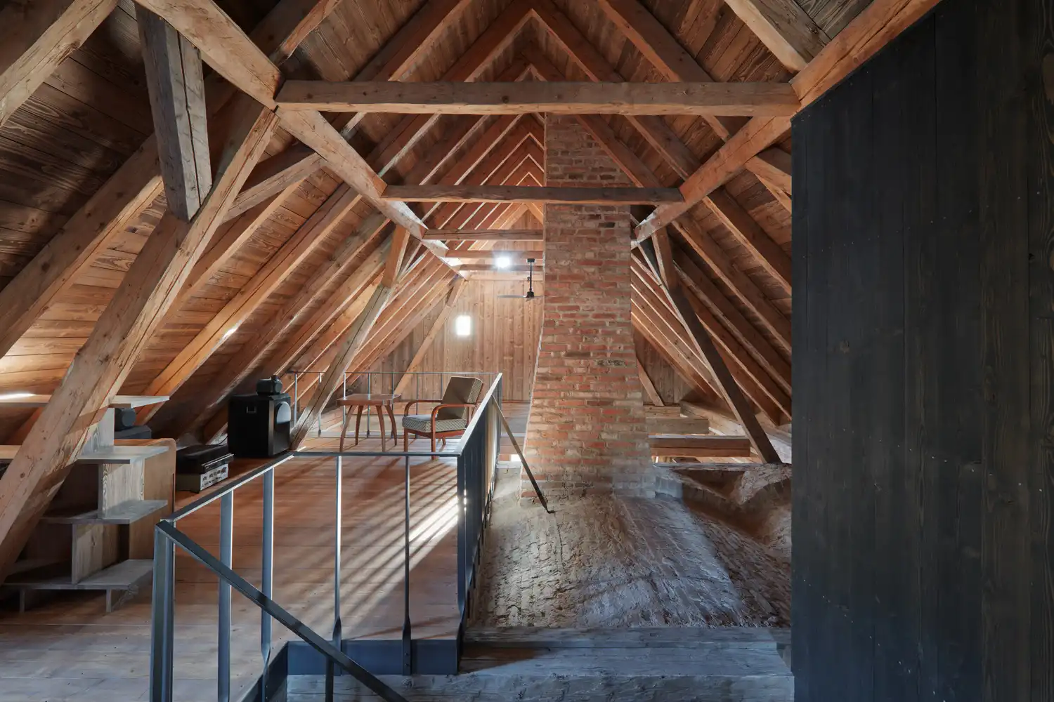 Tato rekonstrukce hledá odpovědi skrz respekt k původní logice stavení a použití tradičních postupů, snaží se o přirozenost spíš než formální napodobení, pracuje s nedokonalostí a stárnutím.