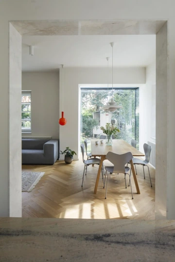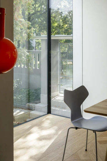 Prvorepubliková vila se nachází v Praze v jednom z prvních českých pokusů o tzv. zahradní město, které mělo nabídnout zdravé a levné bydlení v rodinných domech pro dělnickou třídu. Důraz byl kladen na funkčnost a praktičnost, v celé čtvrti se opakují typizované prvky jako charakteristické plotové tvarovky, tabulková okna, zábradlí balkonů nebo terazzové soklové římsy. Tyto prvky však z lokality postupně mizí, tím spíš se je návrh snažil obnovit. A v rámci konceptu moderního bydlení jen vilu adaptoval na požadavky toho současného.
