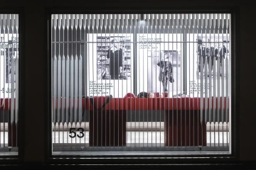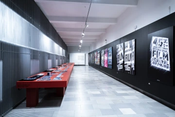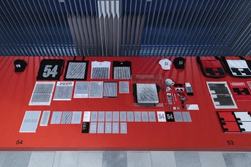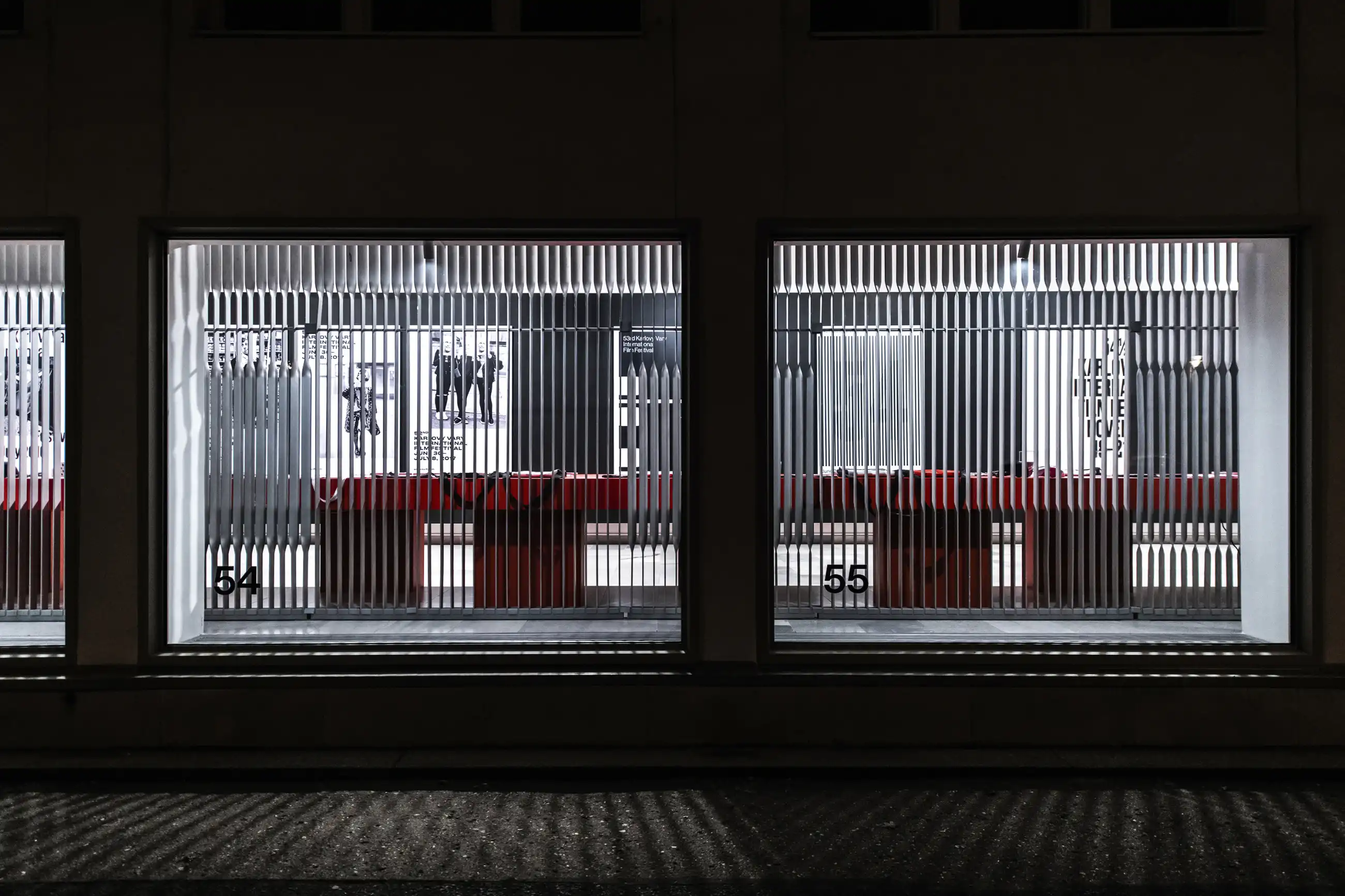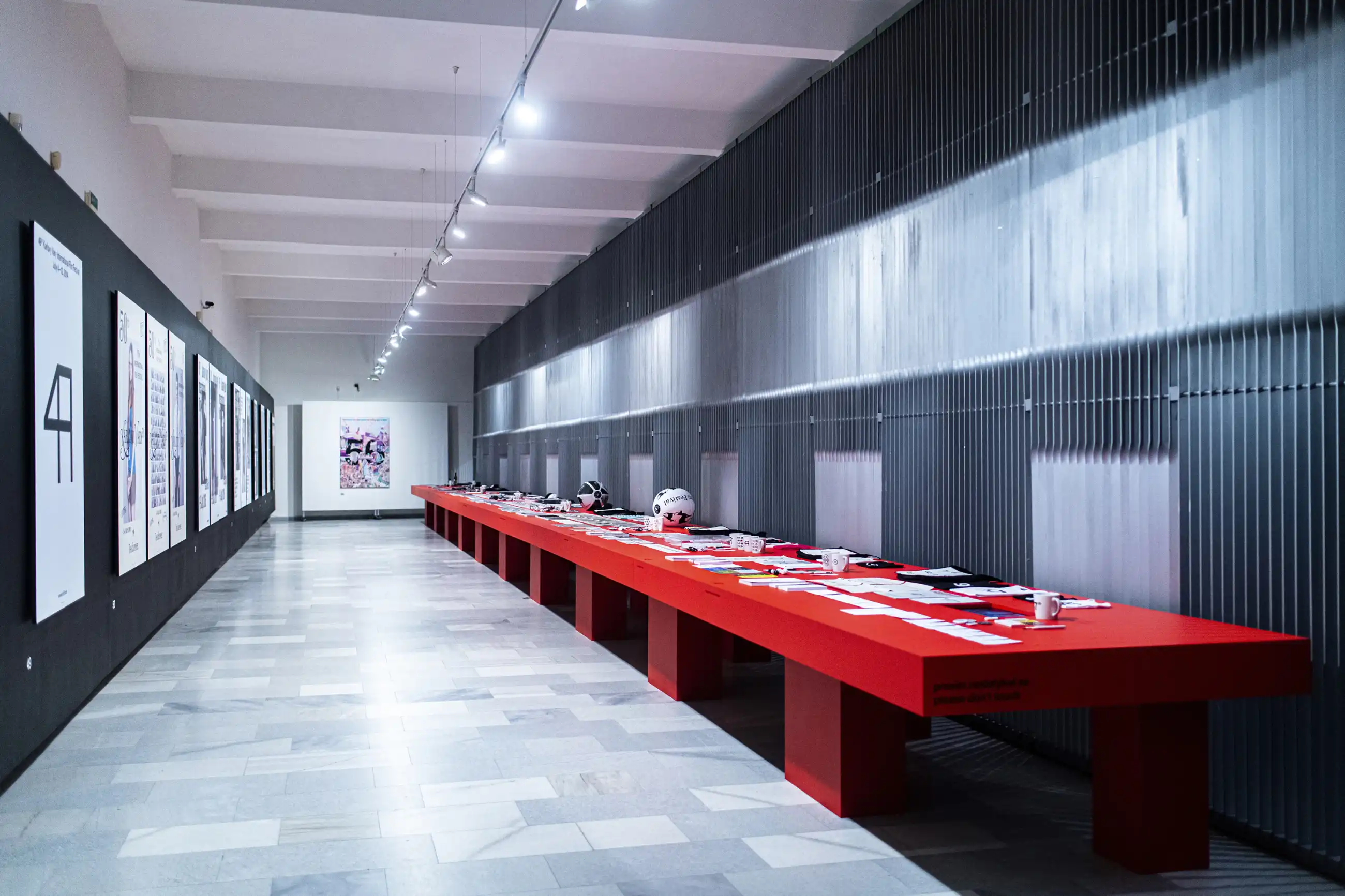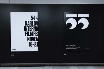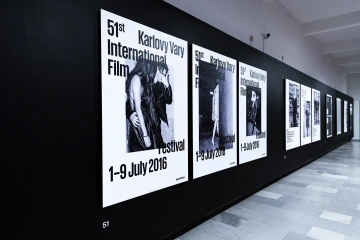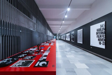 Další milá spolupráce se Studiem Najbrt na výstavě jejich legendárních vizuálů pro karlovarský filmový festival za více než čtvrt století! Naše architektonické řešení využívá linearity výstavního prostoru a řadí jednotlivé ročníky chronologicky. Umožňuje tak vnímat kontinuitu, pestrost a hravost, někomu snad dokáže i oživit vzpomínky... Průběžná linka, černá stěna pro hlavní citylighty a červený stůl pro doprovodné prodejní předměty a tiskoviny. Myšlenka grafického gridu se rozvíjí na ploše stolu jako propojující rámec pro rozličné předměty i vodítko pro instalaci. Zážitek i zvenku!